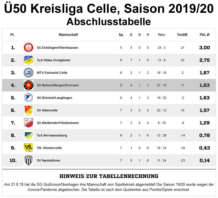 Alt-Senioren Ü50 - SG Belsen/Bergen/Eversen - Saison 2019/20