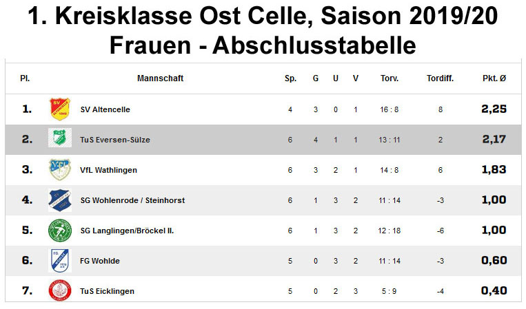 Ab der Saison 2018/2019 ist der TuS Eversen/Sülze wieder mit einem eigenen Frauen Team im Fußball Kreis Celle vertreten und spielt in der 1. Kreisklasse Ost.