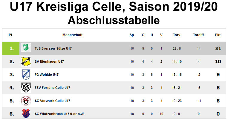 --- TuS Eversen/Sülze U 17 Saison 2019/2020