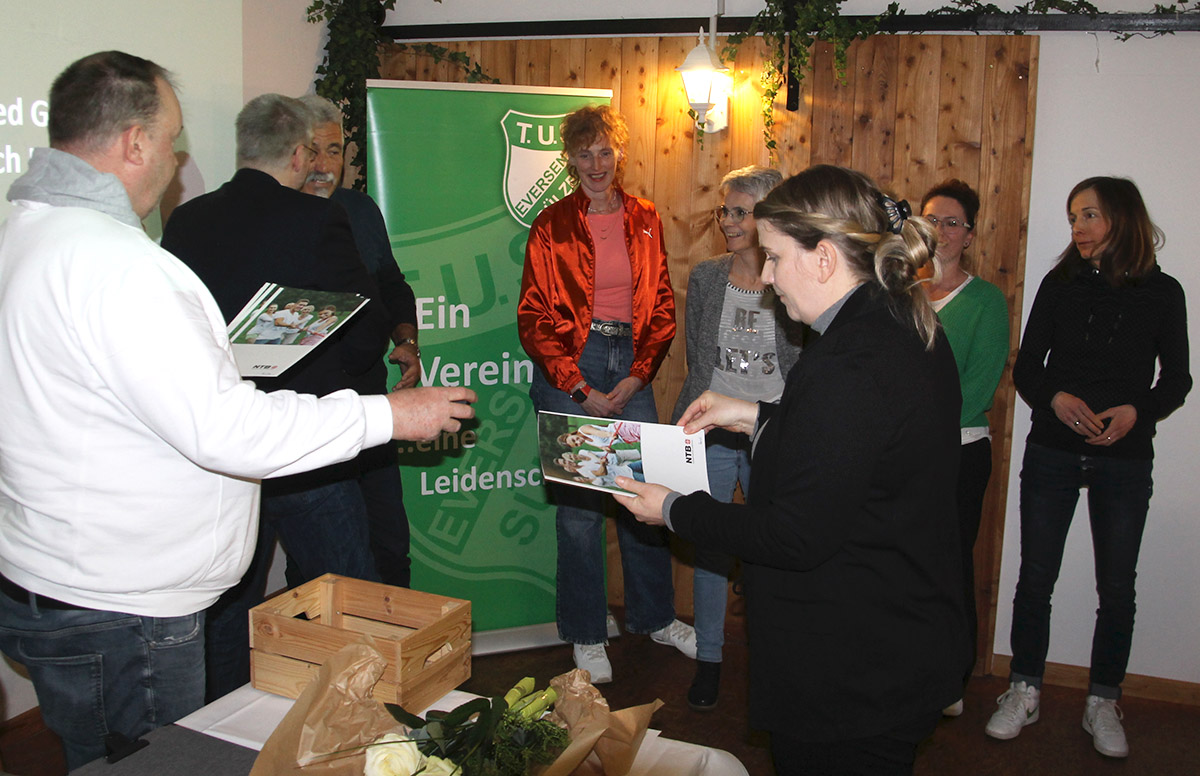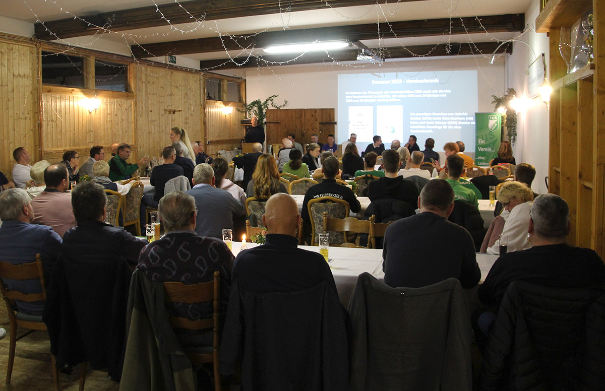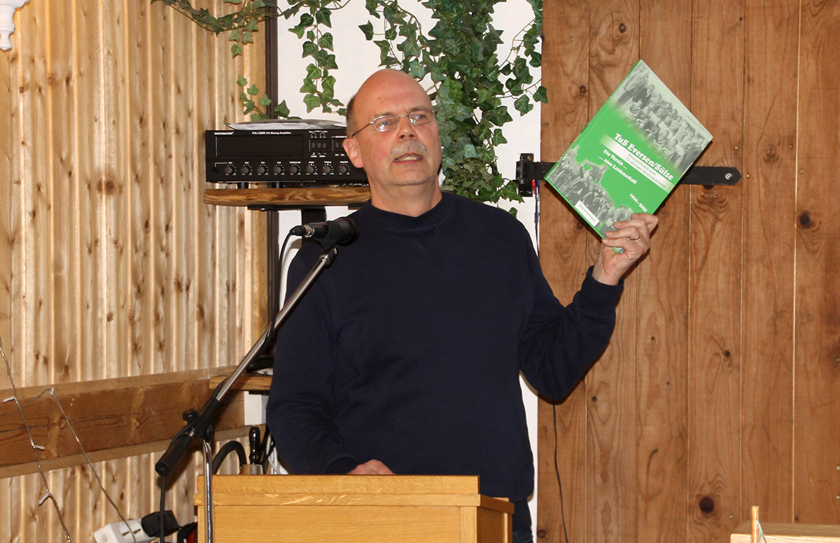 Abschließendes Highlight der JHV war die Vorstellung der TuS Eversen/Sülze Vereinschronik zum 75-jährigen Jubiläum durch Jörg Grünhagen. Diese wurde auf der JHV interessiert aufgenommen und beim ersten Durchblättern fanden viele Mitglieder sich selbst sowie Familienmitglieder und Freunde in der Chronik wieder.