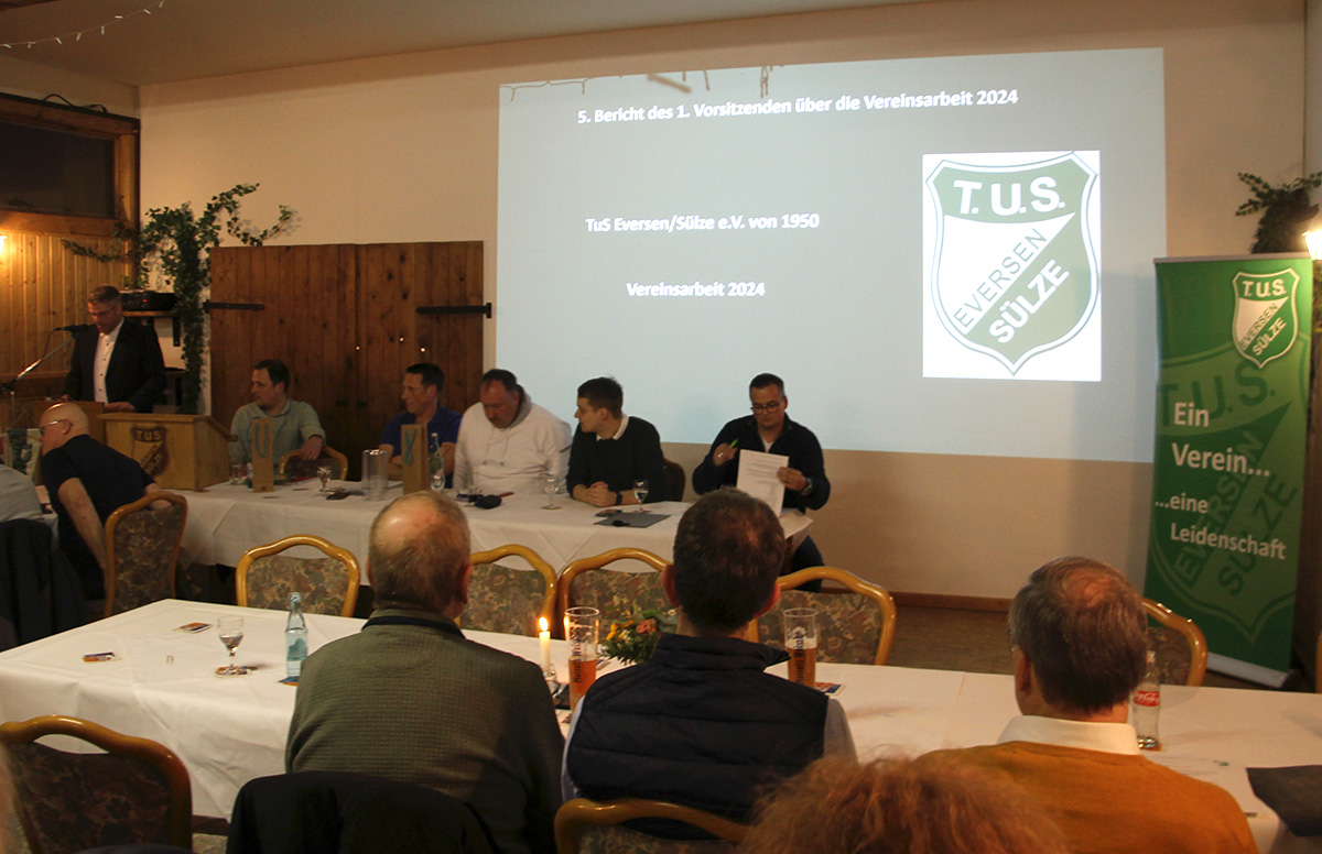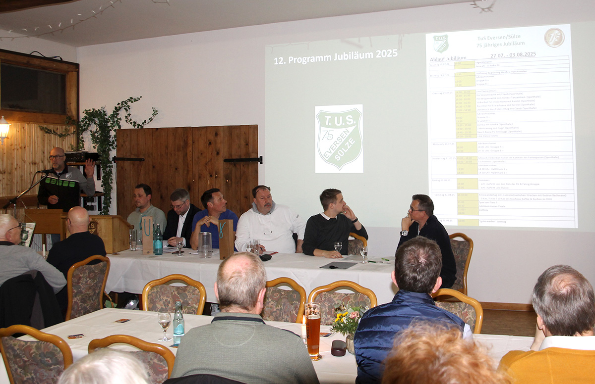 Die diesjährige Jahreshauptversammlung des TuS Eversen/Sülze mit rund 90 Mitgliedern stand ganz im Zeichen des 75-jährigen Vereinsjubiläums. 1950 wurde der TuS als reiner Fußballverein gegründet und hat sich mittlerweile zu einem Sportverein mit 8 Sparten weiterentwickelt.