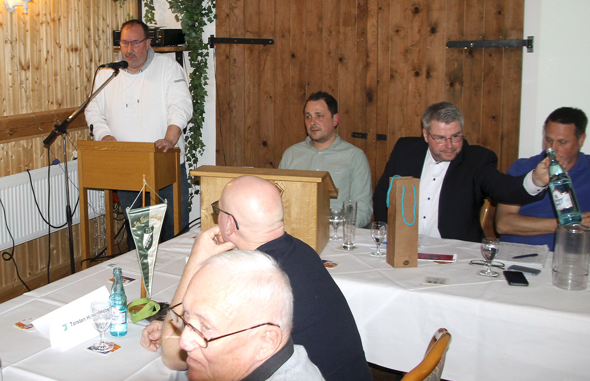 Für 30 Jahre aktive Vorstandsarbeit wurde Hauptsportwart Thomas Bornheber, der früher auch bereits Vorsitzender und 2. Vorsitzender war, durch Klaus Schröter mit einem Präsent im Namen des Vorstands geehrt.